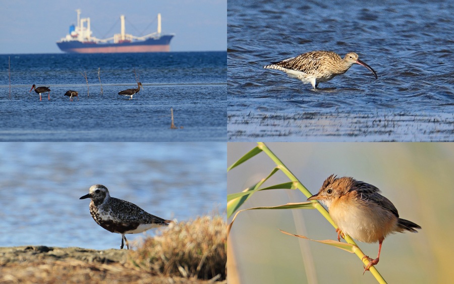 Bir gün önce yelpaze kuyrukları görünce Ayvalık cıvarında devamlı gittiğim sahilde de aynı şekilde uçan minik kuşlar olduğunu hatırladım ve orada da en az 5 tane yelpaze kuyruk gördüm fotoğraflarını da çektim, kara leylekler denizde dolaşıyorlardı.
