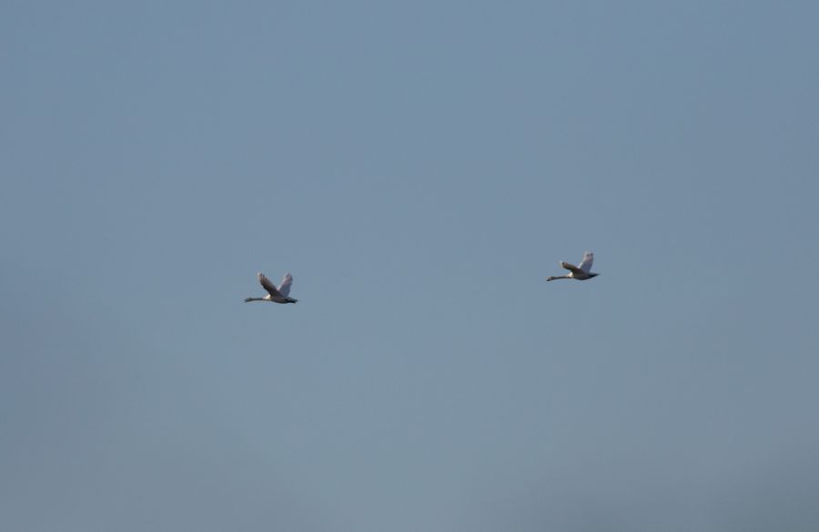 Karacabey longozu. Fotoğraf uzak ve kötü... Bu haliyle kuğu ve küçük kuğu ayrılabilir mi?