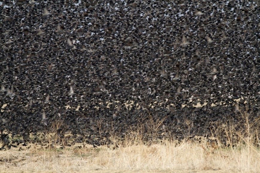 Pek anlaşılan bir fotoğraf değil ama kuş miktarını gösterebilmek için yüklüyorum. Ancak bu kadarı girebildi kareye. Yaklaşık 400-500 metre mesafeden çektim. İnanın bu karenin en az 5-6 misli daha vardı sürünün tamamı.