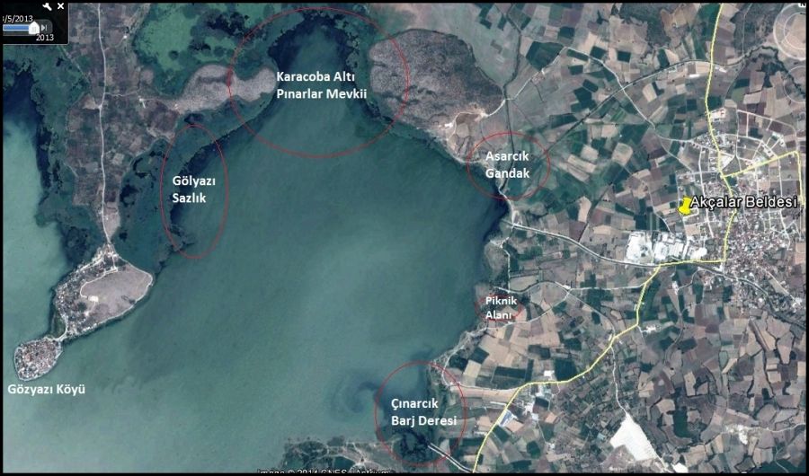 Uluabat Akçalar sahilinde, dahası gölün sahil olan tek düzgün kısmı burası, yine Akçalar beldesinden geçerek göle inen her hangi bir yoldan Piknik Alanına ulaşmak mümkündür.