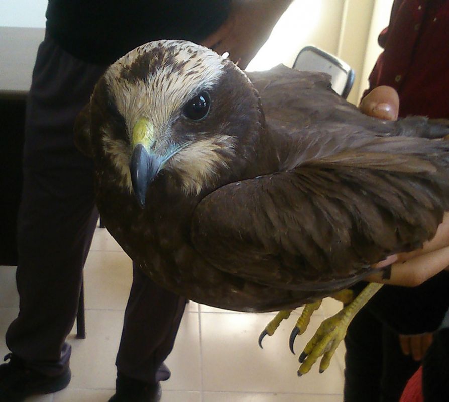 okulumuzun yakınlarında uçamayan bu yırtıcıyı öğrenciler yakalayıp okula getirmişler biz de Kahramanmaraş Orman Bölge müd. yetkililerini arayarak durumu bildirdik ve kuşumuzu yetkililere teslim ettik türü konusunda yardımcı olursanız sevinirim.