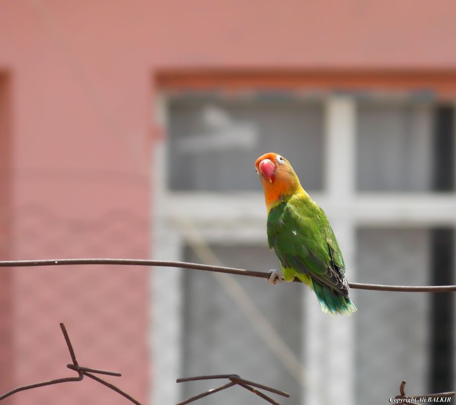 Evde oturuyordum.Pencerenin karşısında renkleriyle hemen gözüme takıldı.Aceleyle fotoğraf makinesini çıkardım bir iki kare çektim.Büyük ihtimalle kafesten kaçtığını düşünüyorum.Ben tanımlayamadım türü nedir acaba ??? Adana/Seyhan