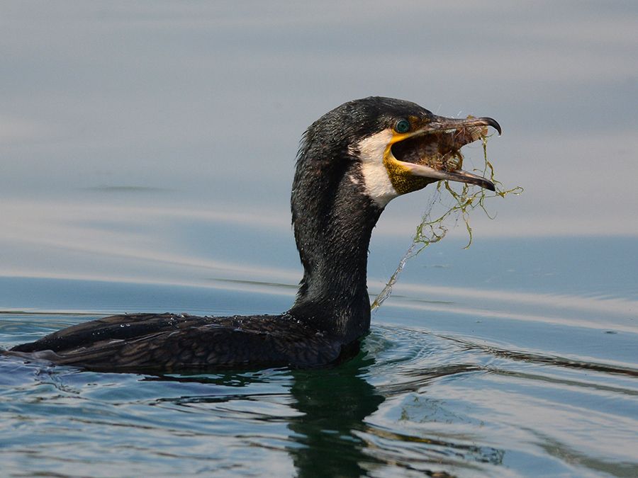 Doğaya atılan atıkların hayvanlar için ne kadar kötü olabileceğine bir örnek. Başı boş bir ağ. Bu karabatak bu balığı ağı ile birlikte yuttu. Umarım ağı çıkarabilmiştir. Benim gördüğümde hala ağzında duruyordu.