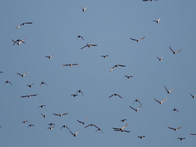 Sabah 7:30 da uyanınca balkona çıktım. Karşıdan yaklaşık 200 bireylik bir sürü geliyordu. Önce güvercin sandım. Yaklaştıkça daha büyük olduklarını fark ettim. Yaz Atmacası aklıma geldi ama sürekli kanat çırpıyorlardı. O sırada elime geçen fotoğraf makinesini kaptım. Evin üstünden geçtiler ve arka pencereye koştum. Sadece bu fotolar var.