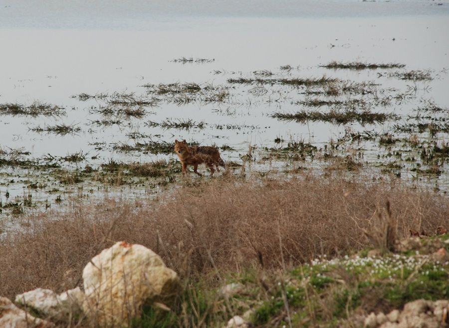Izmir Kus Cenneti arazisinde, sazliklar bölgesinde, kucuk bir biyikli bastankarayi filme cekmeye calisirken, ansizin agacli yoldan tedbirli bir sekilde gelen, bizi gorunce kararsiz kalip suya girmeyi goze alan cok guzel bir cakal... Subat\'in son haftasindaki gunlerden birinde cekildi.. En unutulmaz anlardan biriydi bizim icin..!