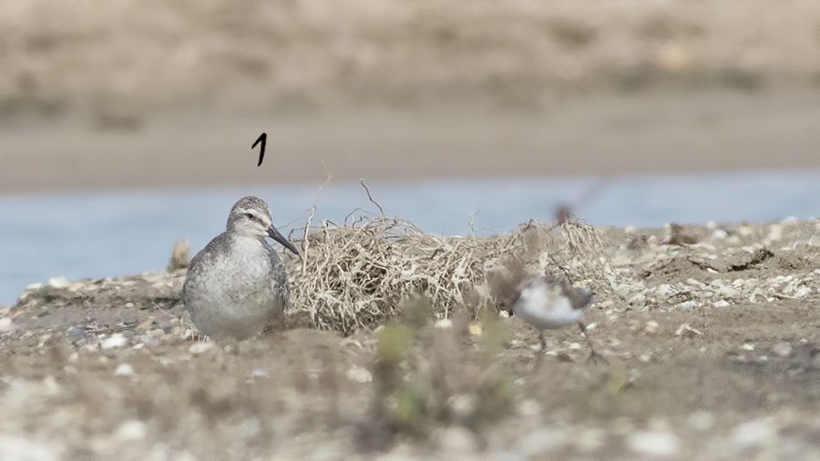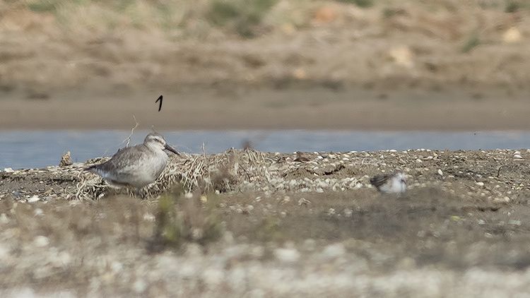 Göksu\'da çekildi. Sürmeli kumkuşu demiştim ama daha dikkatli bakınca büyük kumkuşu da olabilir dedim. Acaba büyük kumkuşu mu? Hemen sol yanında küçük kumkuşu.