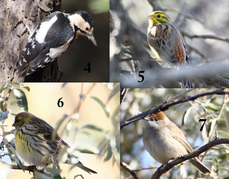 1-Aksırtlı ağaçkakan 2- çıvgın 3- bataklık çintesi 4-alaca ağaçkakan 5-sarı çinte 6-küçük iskete 7-karabaşlı ötleğen (dişi) eymirde çekildi.. doğrumudur ???