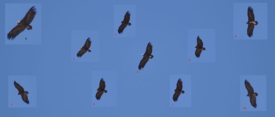 Uzun zaman görünmeyince başlarına kötü bir şey geldiğini düşünmeye başlamıştım. Üç birey olarak uçtuklarını görünce sevindim. 55-200 ile elde bu kadar netleyebildim. (Bir bireyin 10 seri fotoğrafı).