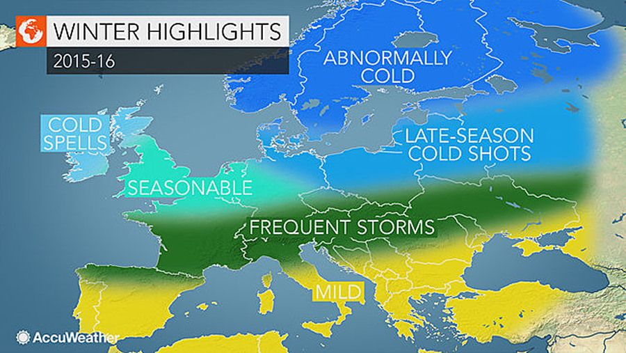 Accuweather 2015-2016 kış tahminlerini yayınladı. Kuzey bölgelerinde ve Sibirya\'da aşırı soğuk bir kış beklenirken ülkemiz ve Güney Avrupa\'da yağışlı, fırtınalı, ancak ılıman bir kış bekleniyor.