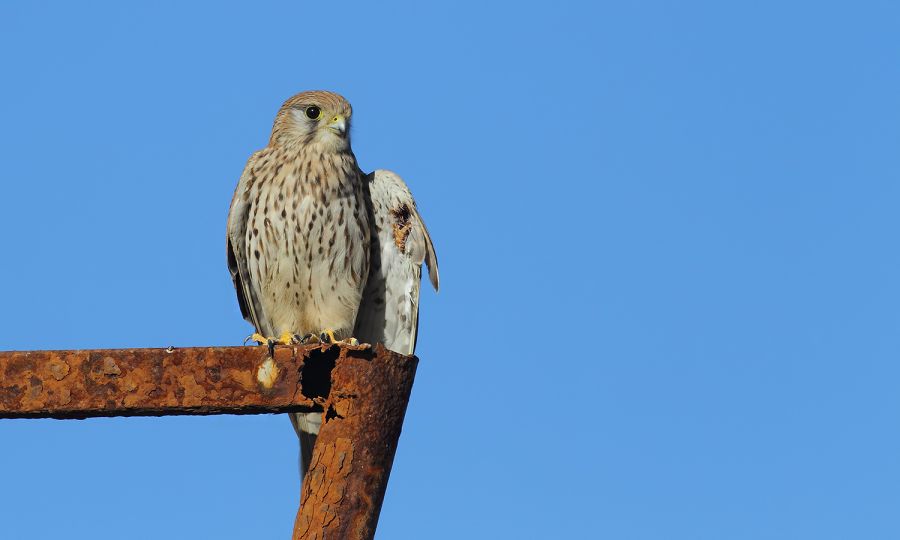 Bugün Tuzla\'daydı. Uzun süre yakalamaya çalıştım ama, avlanmasına yetmeyecek halde, zorlanarak uçuyordu. Kaygım, bu uçuş düzeyi ile aç kalması ve durumunun kötüleşmesi. Araçla takibim sırasında, binalar arasındaki alanlara atılan cam şişeler nedeniyle lastiğim parçalandı. En son sahildeki balıkçı evlerinin olduğu mekanda kendi haline bıraktım. Adanalı arkadaşlar alanı ziyaretlerinde ilgilenebilirlerse, sevinirim.