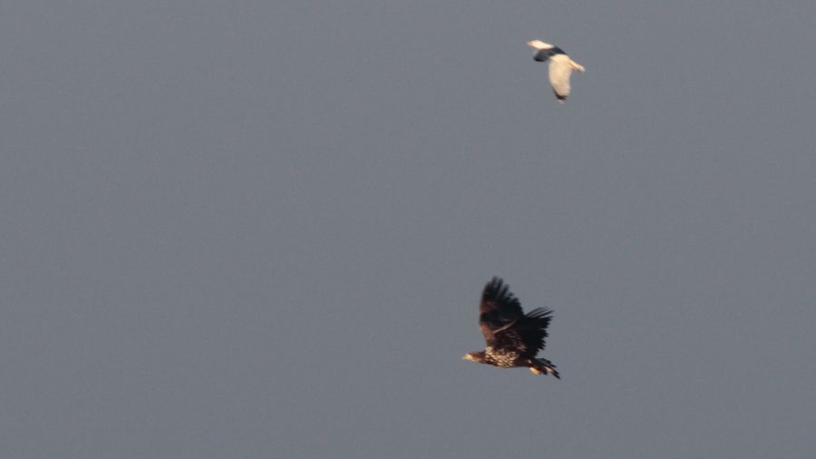 Birkaç günden beri Gedizde arkadaşların gördüğü ancak pek birşeye benzetemediği o \'\'bayağı iri\'\'yırtıcıyı kırdenizde buldum.Önce martılar sonrada üstteki kuş tarafından taciz edilince uzaklaştı.Yaklaşık 700m.den ancak bu kadar kaydedebildim.Ama kolay tanınacağını düşünüyorum...