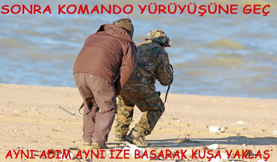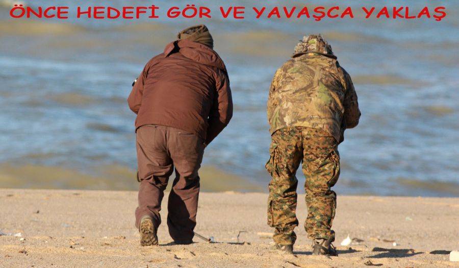 7 Şubat 2016.. 3 kişi yola koyulduk. Karaburuana vardığımız da hava iyice sertleşmiş, hava da adeta tipi vardı. Ben dondum ve Yusuf yusuf meselesi araçta kaldım. Bu İki kurt Kuş fotoğrafçısı Karaburun Sahilde Guş peşine çoktan düşmüşlerdi bile.. Ama nasıl düşme böyle. Görünce bende hemen onları çekmeye karar verdim. Öyle bir yürüyorlardı ki öyle böyle değil sanki ikisi de SAT komandosu ya da Bordo bereli eğitimi almış. Araçlarından inerek sahile doğru ilerlediler. Hedef de ki kuşları görünce. Hemen arka arkaya geldiler. Biri adımın atıyor öteki öndeki ayağını kaldırınca onun ayak izine basıyor. 50 metre böyle ilerlediler. Sonarı mı