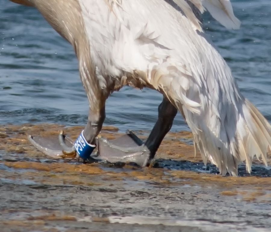 Gediz deltasındaki tepeli pelikanlardan birinin halkası vardı. P519. Belki bu kınuda çalışanlar için önemli olabilir.