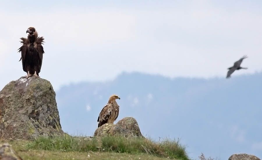 herkese selamlar aslında bu ikilinin fotoğrafları artık sıkacak ama bu bölgeye birdahaki gidişimizde karşımıza sakallı akbaba çıktı ..o anda pek farketmedim etrafta uçan kara akbabalar vardı,ben bu ikiliye odaklanmıştım..fakat sonra fotoğraflara bakarken arkada görülen kuşun kuyruğu dikkatimi çekti sonraki gün de gördüğümüz hatta benim yaklaşık 2 dakika kameraya aldığım(ışık çok kötü olduğu için fotoğraf makinamı kenara koymuştum kiii....)sakallı dikkate alınırsa bunlara süper üçlü diyebilirmiyiz...?