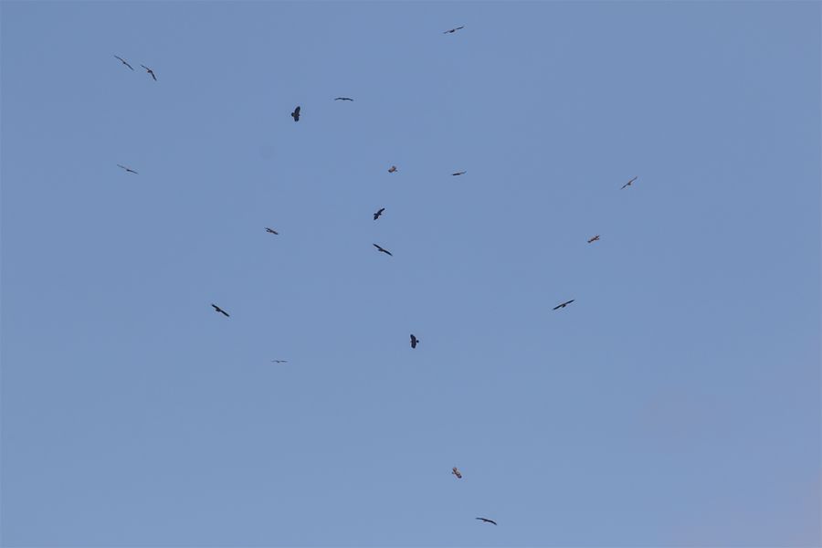 Göç sırasında Payas-Hatay seması. Küçük orman diye düşündüm. İkinci fotoda 19 birey var.