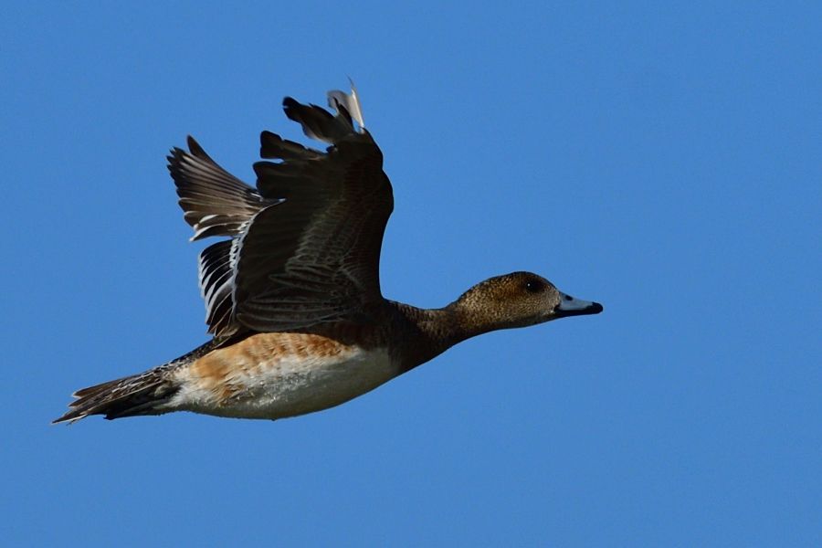 Bu dişi Fiyunun kanatlarındaki sorunu fotoğrafı çektiğimte farketmedim. Uçuşunda dikkat çeken bir şey yoktu. Sadece hatırladığım kadarıyla, birlikte uçtuğu grubun biraz arkasından ve onlardan biraz daha alçaktan uçuyordu.