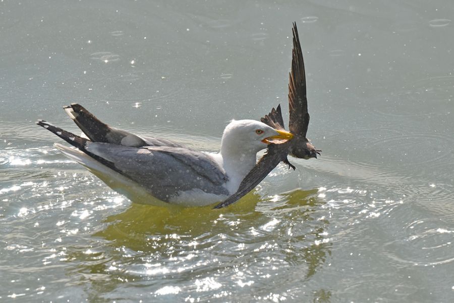 Bakırköy Botanik Parkında Fatih beyle benekli bülbülü ararken martı agzında ebabille suya indi. Canlı yakalayabilir mi? Belki ölüsünü bulmuştur. Hareketsiz gibiydi. Fatih bey yanlarına indi, martının yemeyi beceremeyip sonunda bıraktığını, bir kedinin gelip kaptığını söyledi.