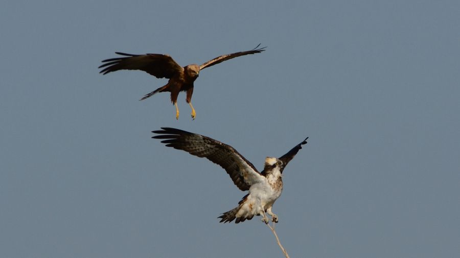 Bu Saz Delicesi ile Balık Kartalı arasındaki itişme aşağı yukarı aynı büyüklükteki iki yırtıcı arasında gördüğüm ilk itişme oldu. Saz Delicesi yaklaşık 5 dakika boyunca çeşitli dalışlarla Balık Kartalını konduğu daldan uzaklaştırmaya çalıştı. Balık Kartalı ise tedirgin olmakla birlikte, gürültüye pabuç bırakmadı ve yerini terk etmedi.