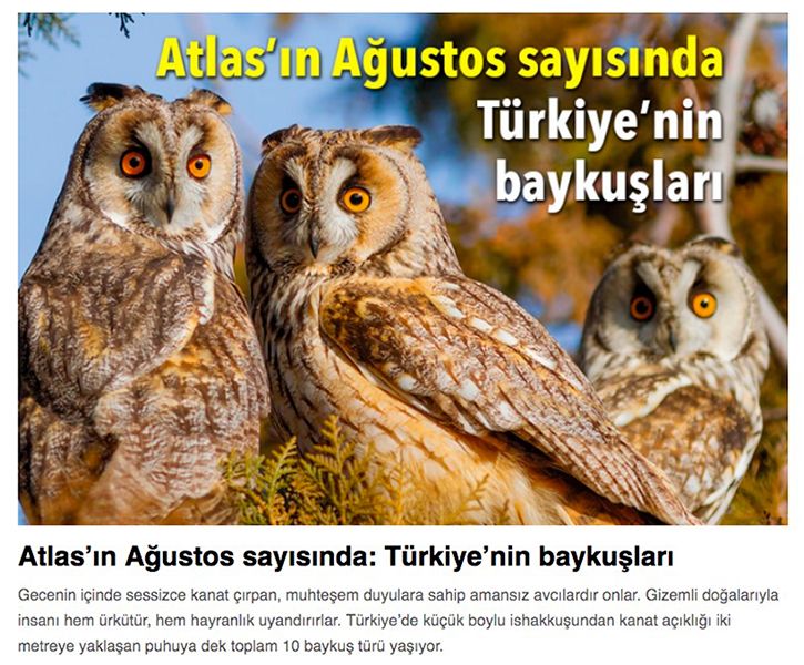 Atlas Dergisi\'nin Ağustos sayısında üyelerimizin fotoğrafları eşliğinde Kazım Çapacı hocamızın kaleminden Türkiye\'nin Baykuşları. Atlas Dergisi ile ilk ortak çalışmamız. Yakında bayilerde kaçırmayın..
