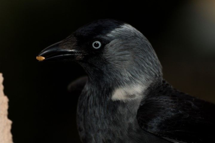 Kara karga, ağzındaki buğday. Kış mevsiminde pencere önüne koyduğum yemlerden nasibini almak için uğramış :)