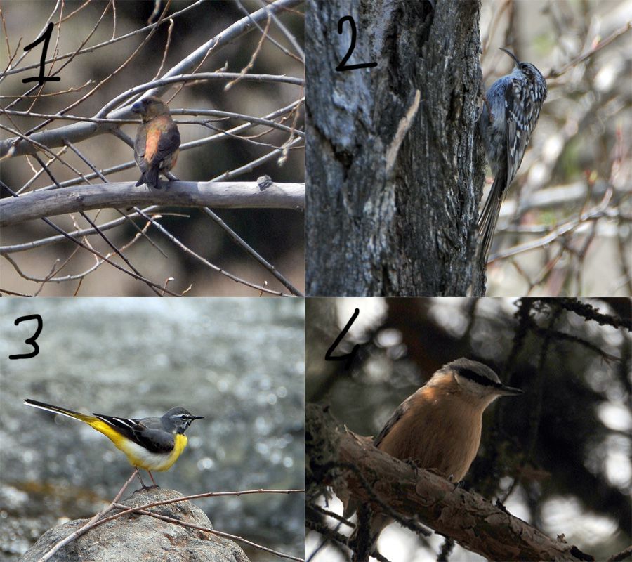 1-çapraz gaga 2-tırmaşık 3-dağ kuyruksallayan 4-sıvacı 5-kuzgun 6-ökse ardıç doğrumudur acep