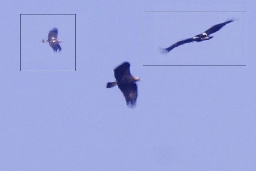 DÜn Özmen\'in (abrecchia) bildirimi üzerine gittiğim Süloğlu\'nda iki adet şah kartal gördüm. Alan üreme yaptıklarını bildiğimiz, yuva olan bölgelerden. Yan yana konmuştular. Ben durunca onlar kalktı. Biri genç diğeri erişkindi. Erişkinin omuz beyaz lekeleri görülüyor. Kertik 2019 da tanı alır mı?