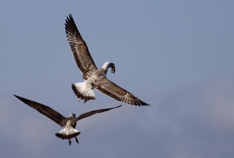 Gümüş martıların balık kovalamacası belki 5 dakika sürdü. Büyükçekmece\'den..