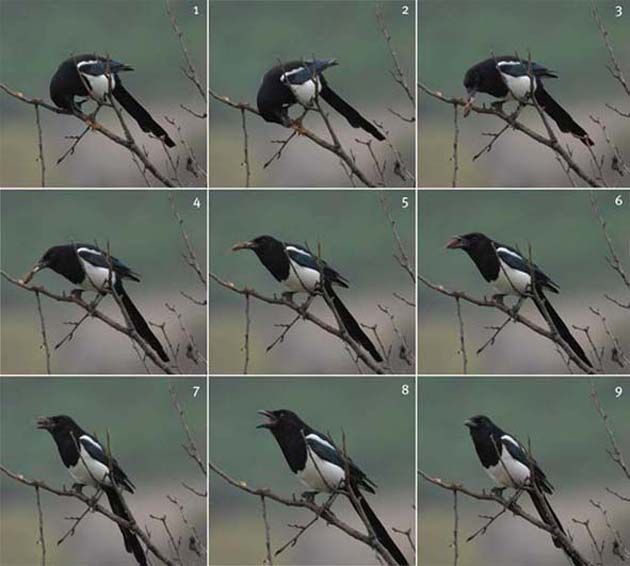 Sevgili Hakan (hakbal) saksağanla ilgili beslenme anı karelerini bu şekişde hazırladım. 1. görür 2,3,4 yakalar 5,6, agza atmadan önce düzeltir. havaya atma anı benim foto galeride 7,8 yutma anı 9 mutlu son Selamlar