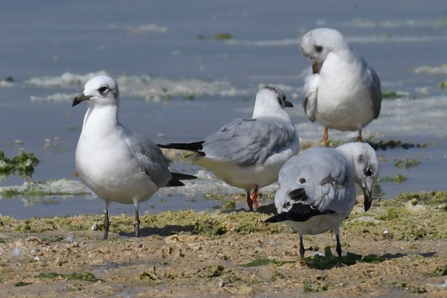 Ön plandaki 2 martı , yeşilimsi gaga ve ayakları olan küçük gümüş martı mıdır?