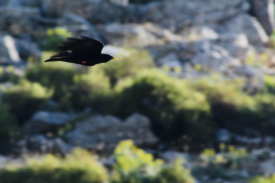 Antalya,Aksekide 1450 metre rakımda çektim.Dut yiyorlardı.Buralarda Cura deniyor. Sarı gagalı dağ kargası.