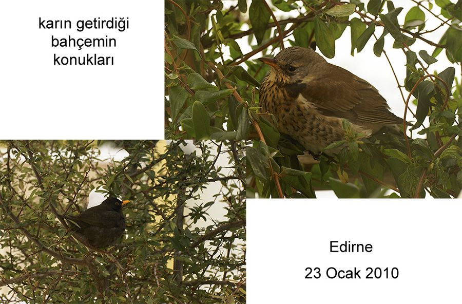 Edirne4-5 gündür kar altında. Turduslar bahçelere akın etmeye başladılar.