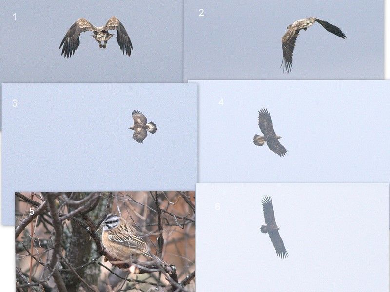 Kütahyada Şubat ayının soğuk ve çok kapalı son pazar gününden.. 1 ve 2 akkuyruklu kartal, 3-4 kok veya bok , 5 kaya çintesi 6 kara akbaba .. diye düşünüyorum