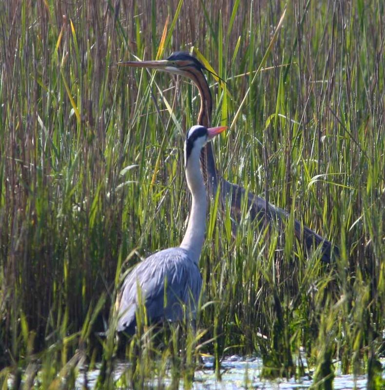 Gri balıkçıl ile Erguvani nin boyut farklılığı.. Geçen hafta Hami Sami ağabeyde görüntülemişti.. Belgesel niyetine Selamlar