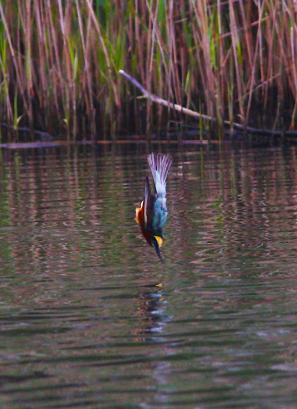 Bu anı sizle paylaşmak istedim..Arı kuşlarının 90 derece ile suya pike yaparak girdiğini bilmezdim.. Site için, davranışlara data olsun diye Tür ekleye de koydum..