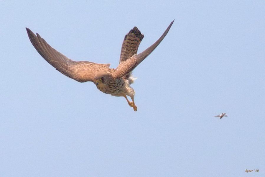 Sevgili Bedri FF\' a çekirge tahmin edilen avıyla yerleştirmişti. Ben bunu çektiğim gün havada çeşitli varyeteler yaparak yakaladığı kanatlıyı görüntülemeye çalışmıştım. Aşağı sağdaki de bayağı büyükçe birşey, türünü bilmiyorum. Sonraki karelerde onu yakalamış, fakat pençelerinde tutmuş ve uçarken yemekteydi ...