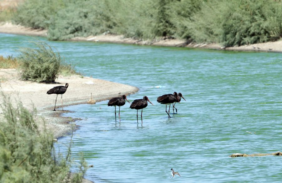 21 Ağustos 2010 Ayvalık Sarımsaklı\'da kanal kenarı. en çok bir çift halinde bölgemde görebildiğim Kara leyleklerin 5 bireyi bir aradaydı. Sanırım göç hazırlığı var.
