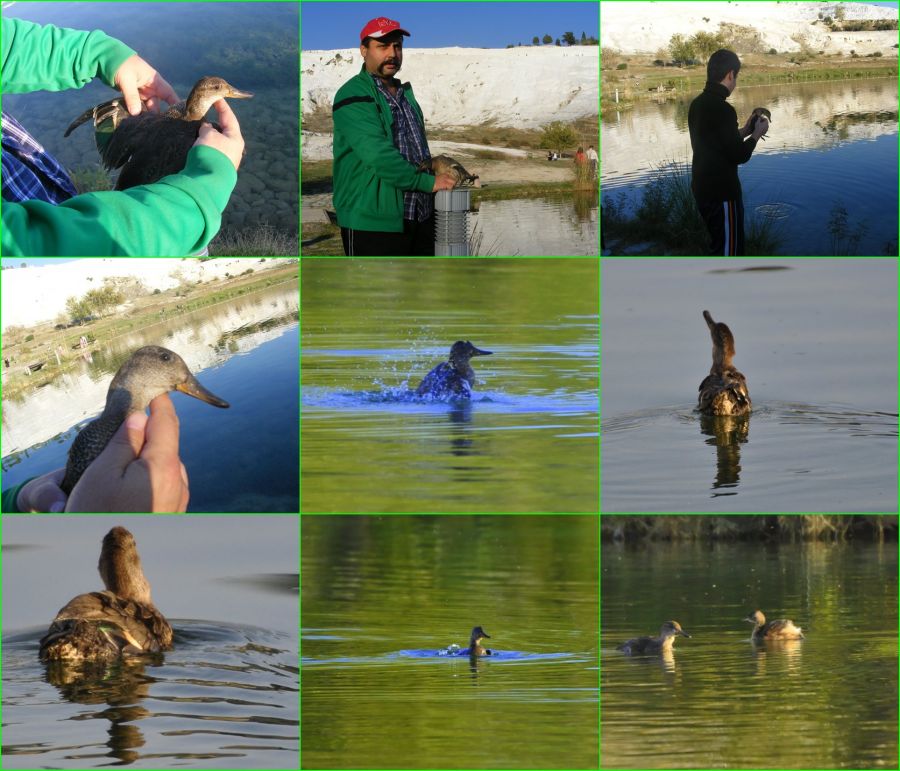 Bundan 1.5 ay evvel bulduğumuz çamurcun ördeği Pamukkale Göletine saldık.Kanadının yarısını kaybetmiş bu güzel ördeği bazen ben bazen abim Orhun ve en çok babam elimizle besleyerek gerekli sağlığına kavuşturup doğaya