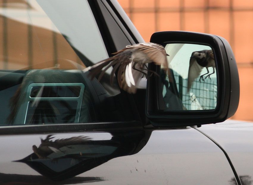 Mayıs ayında, bir sabah araziye cıkmak üzereyken, bu yaramazın aynanın önünde bir şeyler yaptığı dikkatimi çekti..Biraz seyrettim... İnatla aynadan içeriye doğru girmeye çalışıyordu...Başaramıyınca durup dinlenip tekrar aynı davranışı sergilemeye devam etti..