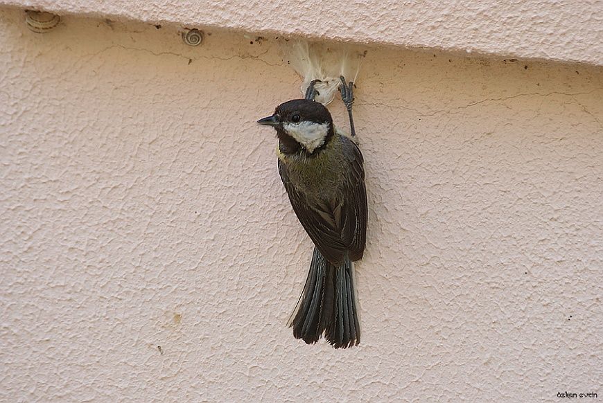 Beslenmek için duvar dibinde böcek aranırken. Yeni Foça 2011 Büyük Baştankara