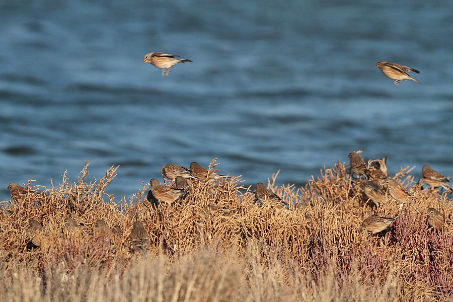 Ani bastıran soğuklar kuşları da etkiledi...onlarca ketenkuşu sürüsü kıyılarda deniz börülcelerinde beslenmeye çalışıyordu bugün... Sizce bu karede kaç ketenkuşu var?
