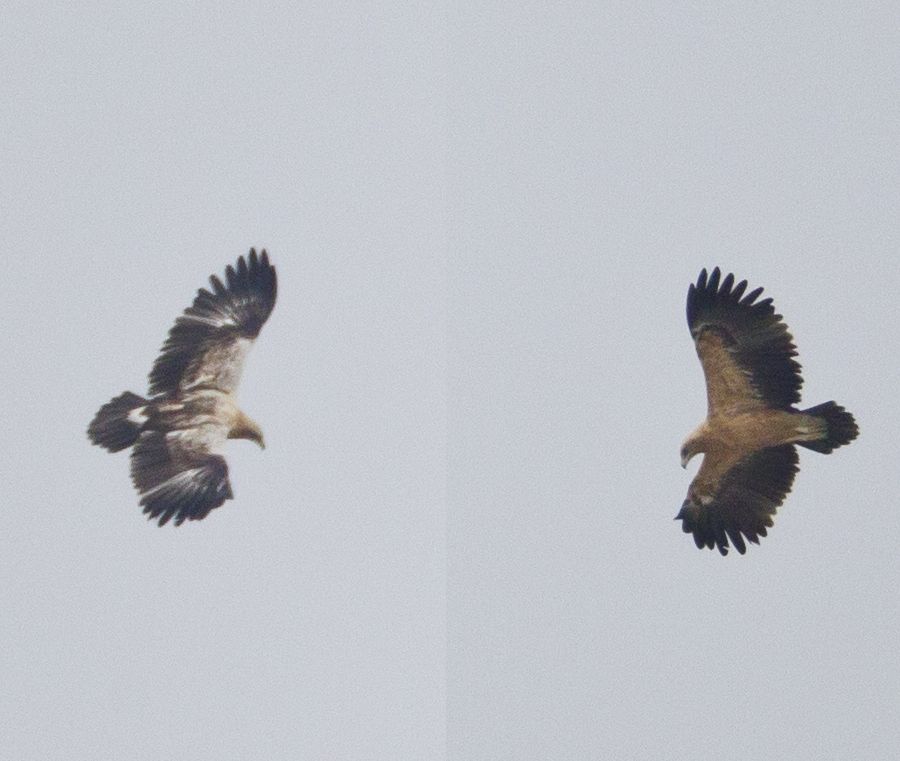 -uçma tüylerinin kanada bağlandığı kısımda Bozkır kartalı gibi beyaz bir şerit (hat) yok.