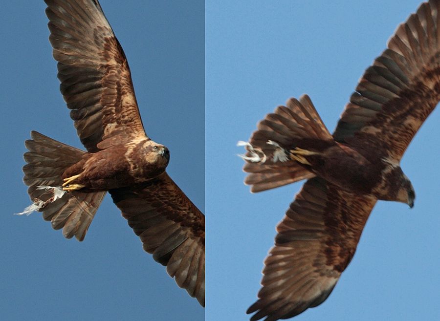 Avını yerken gördüm onu...beni farkedince havalandı ,ama neredeyse bitmiş olan avını bırakmadı...havada oldukça uzaktan çektiğim karelerde beyaz tüyleri görünce gözlerime inanamadım...evde fotoğrafı açıp büyüttüğümde şaşkınlığım bir kat daha arttı...çünkü fotoğrafta av ayan beyan tanınıyordu...