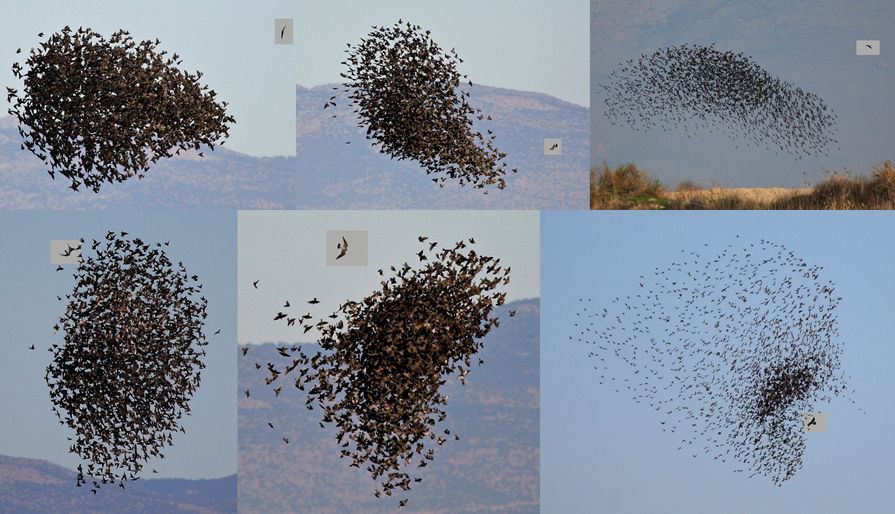 Forumdaki haberde bahsedilen sığırcıkların davranışı ile ilgili fotoğraflarımı buldum...kolajda küçük kalacağından ancak bir kısmını yükleyebildim...görüldüğü gibi sığırcıklar senkronize bir şekilde dans etmiyorlar ,kendilerini taciz eden yırtıcıdan bu toplu davranışila kurtulmaya çalışıyorlar...çektiğim karelerin %90 ında sürünün yakınında veya içinde bir yırtıcı mutlaka vardı...fotoğrafların büyük halinde bu yırtıcılar gökdoğan ve gökçe delice olarak görülüyordu...
