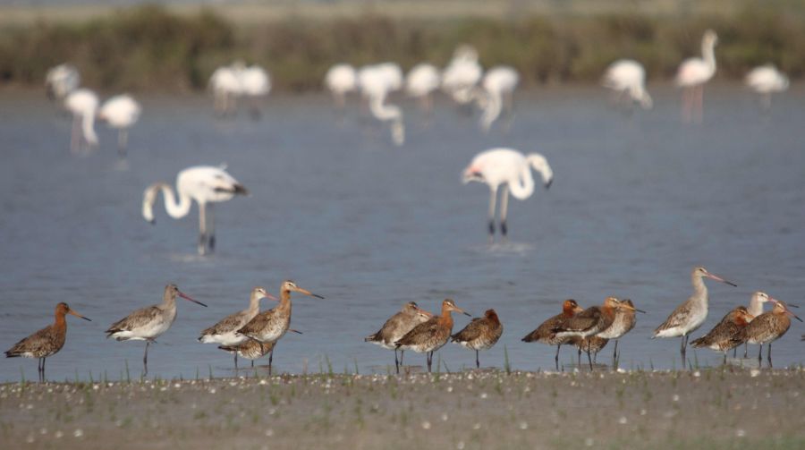 Mayıs 2012 Adana Tuzla. Öndeki boz-kızıl renkliler çamur çulluğumudur. Peki o uzun boyunlu soluk renkliler kim?