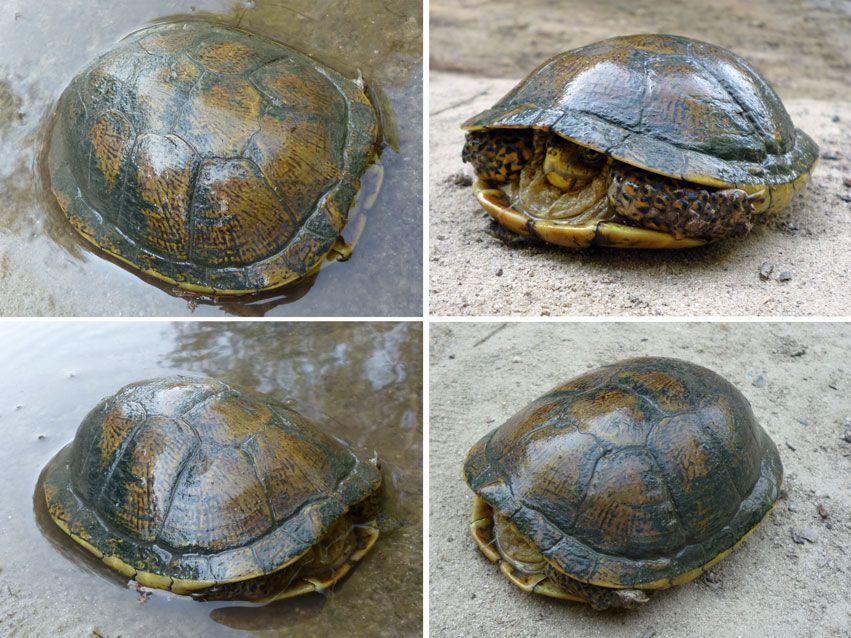 Trakyada karşılaştığım bu tosbağaya İbrahim Baran'ın kitabından Benekli Kaplumbağaya (Emys orbicularis) benzettiysem de farklılıklar gösteriyor. Türü konusunda fikri olanları beklerim. Uzunlamasına 18-19 cm civarlarındaydı.
