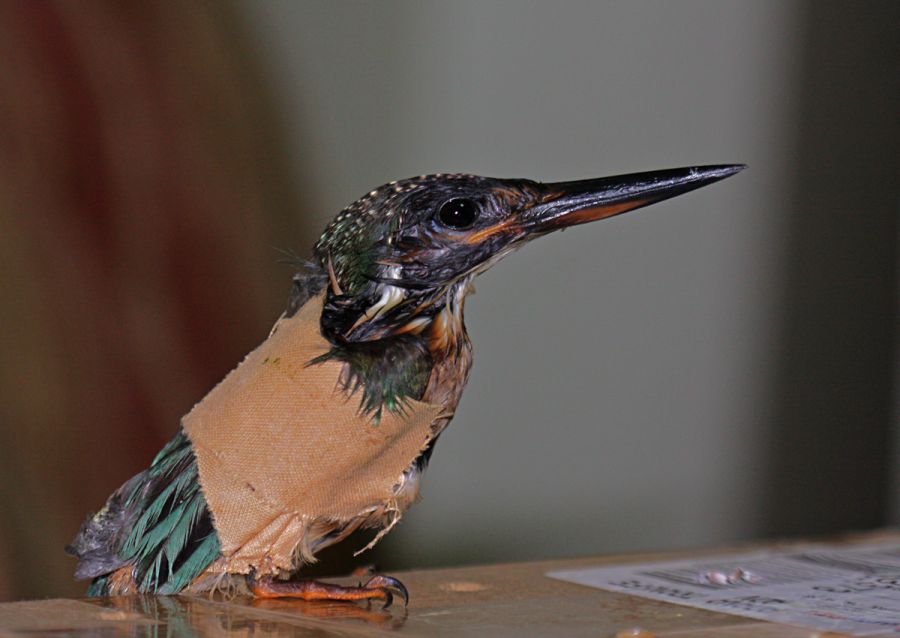 Osmaniye özel idare genel sekreteri Hüseyin karalar bey'e getirmişler bir kanadı yediği saçmadan dolayı kırık halde. Buna baksa baksa Ali Murtaza Doğan bakar diyerek kutu içerisinde bana yollamış. Sağı solu araştırdıktan sonra kanadının yerine getirilip dikilmesi gerektiğine karar verdik İltarımmüdürlüğünün veterineri Hakan beyle birlikte. Hakan bey güzel bir müdaheleyle kemiği yerine getirdi ve kırık yeri amaliyat ipliğiyle dikip gerekli ilaçlamasını yaptıktaN sonra sargıya aldı. üç gün oldu evde hergün iki balığını verip bealenmesini yerine getiriyorum.Yalıçapkınlarının beslenme ihtiyaçlarını herne kadar bilsemde, yinede siz dostların tavsiyelerini bekliyorum sevgi ile...