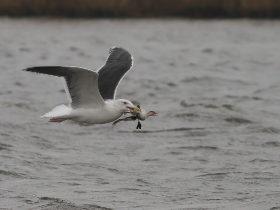 Kısaca olayı özetlersek ; Resmen canlı canlı suda yakaladığı bu kuşu, neredeyse yırtıcı bir kuşun avını yakalayıp sudan çıkardığı gibi çıkardı sonra bir kaç kez suya atıp biraz gagalayıp sonra tekrar sudan alıp biraz götürdü.Daha sonra tekrar suya attı. 3- 4 kez aynı işlemden sonra hepten avını alıp gitti.İşin tuafı başka martılarda vardı ama hiç biri bu ava sarkıntılık edemedi.Gerçi boy farklarıda vardı ama yinede bize enterasan geldi.