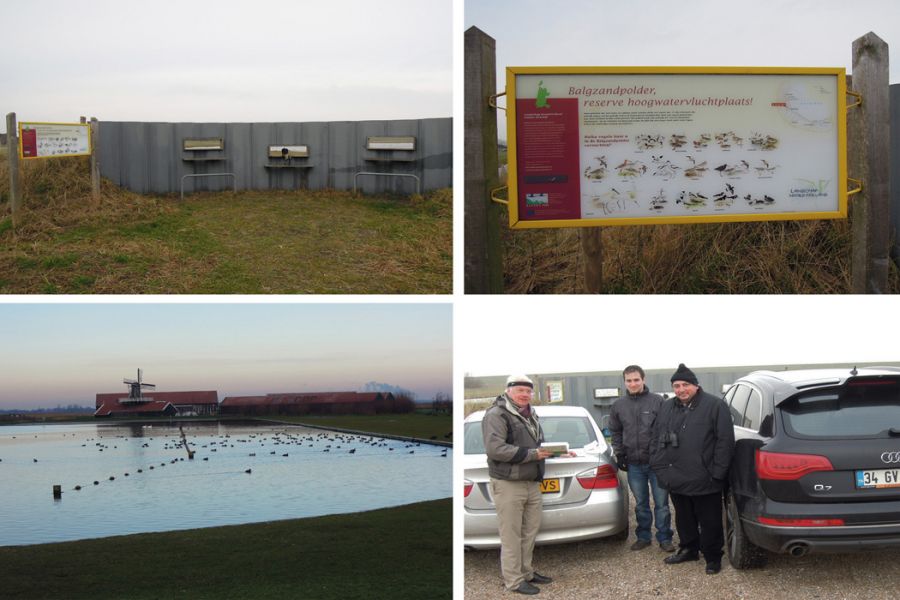 Yukarıda sol üstteki kare Kuş gözlemi için Denhelder-Oostoever' da özel olarak yapılmış bir alan olup üst sağdeki karede ise oradaki kuşları gösteren tabela.Sağ alttaki kare ise alana girdiğiimizde karşılaştığımız Hollandalı kuş gözlemcisi iki arkadaş (BABA-OĞUL)
