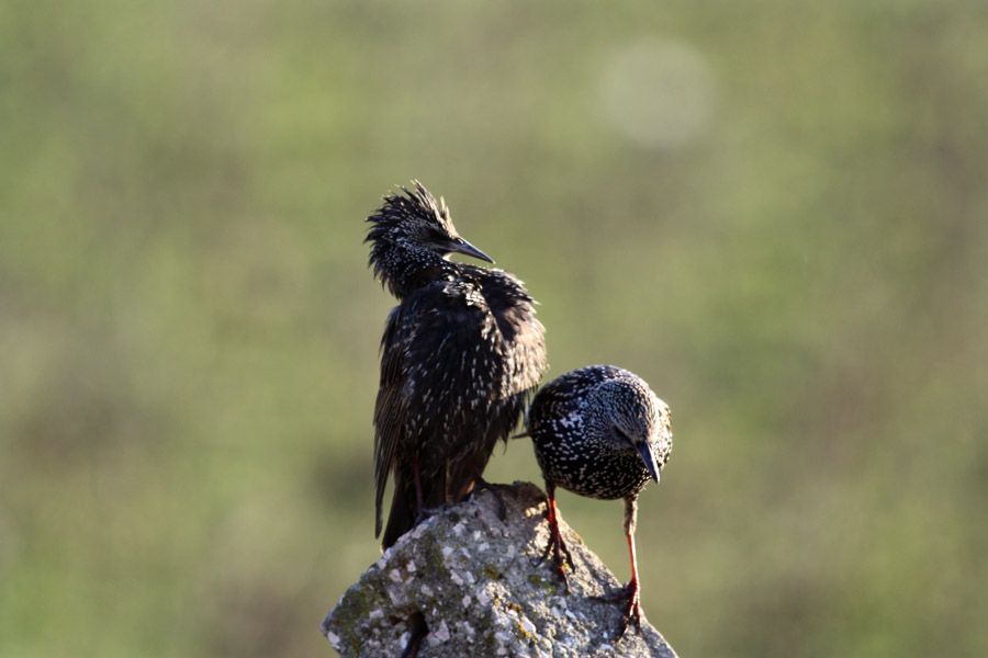 Kar boyunca sığırcıklar onları kovalayan yırtıcılar nedeniyle bir o yana bir bu yana gittiler. Bugün ise şimdiye kadar hiç görmedğim kadar çok birey bahçeye kondu. İlginç kareler çıktı. Derken bir şahin hepsinin yeniden uçup gitmesine neden oldu.
