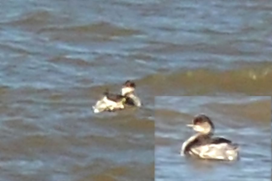 Dürbün ve spotting Scope ile uzunca süre açıkları taramıştım. Şüphelendiğim bir kuşun uzaydan ancak bu karelerini alabildim. Dalgalar arasında bir görünüp bir kayboluyordu.